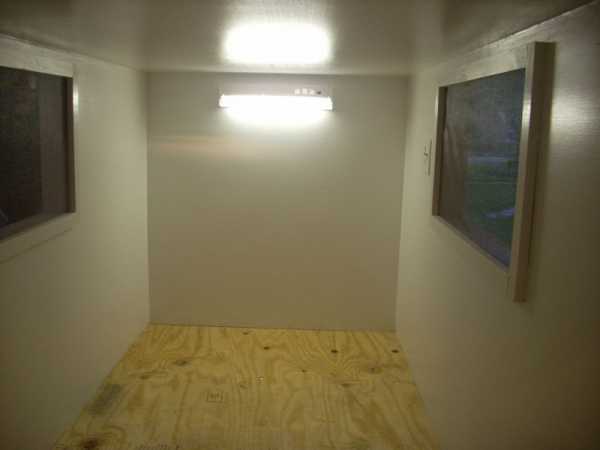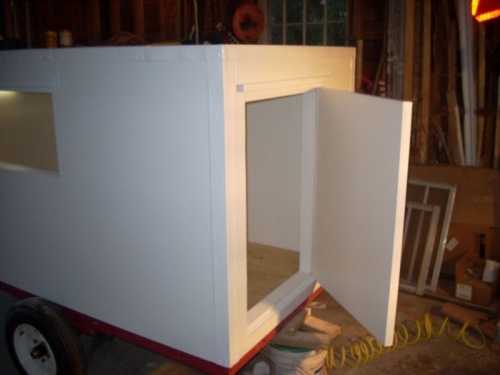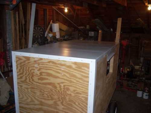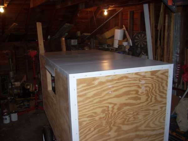 Прицеп-дача построен из бруса, что обшит 1,25 см фанерой по внешней стороне и 0,3 см ДВП по внутренней.