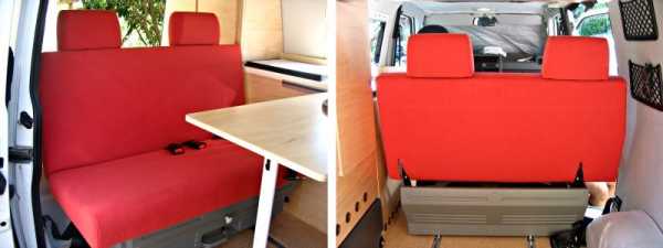 Пару секунд — и у вас уже вполне приличная «зона отдыха» на 4 человек. А если достать столик (с полки над кабиной) то уже и вполне приличная обеденная зона!