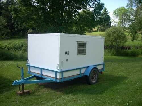 Этот автодом был построен на базе рамы грузового прицепа размерами 1,2*2,4 м.