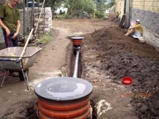 - Трубы ставим с уклоном 2 см для образования самотека.