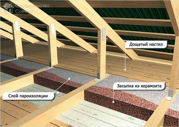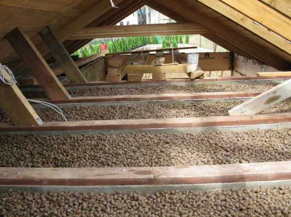 Утепление потолка керамзитом