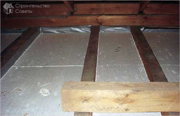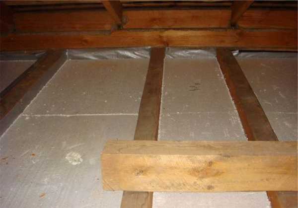 Утепление потолка пеностеклом проводится со стороны чердака