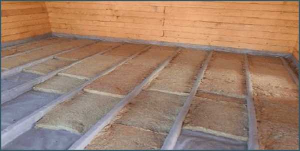 Почти всегда теплоизоляция укладывается в три слоя: первым идет обработка перекрытий – иногда требуется постелить пароизоляционную пленку для потолка, иногда просто промазать слой глины; вторым – слой теплоизоляционного материала, толщина которого может варьироваться от двух до пяти сантиметров; третьим, не обязательным, слоем может являться цементно-песчаная стяжка, на которую после будет укладываться пол.