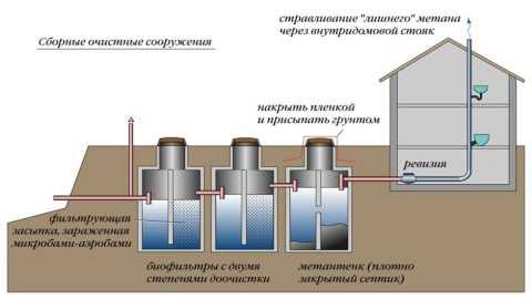 При сооружении септиков, с применением биобактерий, следует учитывать, что они в процессе своей деятельности выделяют большое количество газов, потому каждая емкость устройства должна иметь вентиляцию. Для этого делается труба диаметром около 100 мм., ее к тому же можно будет использовать и для откачки септика.