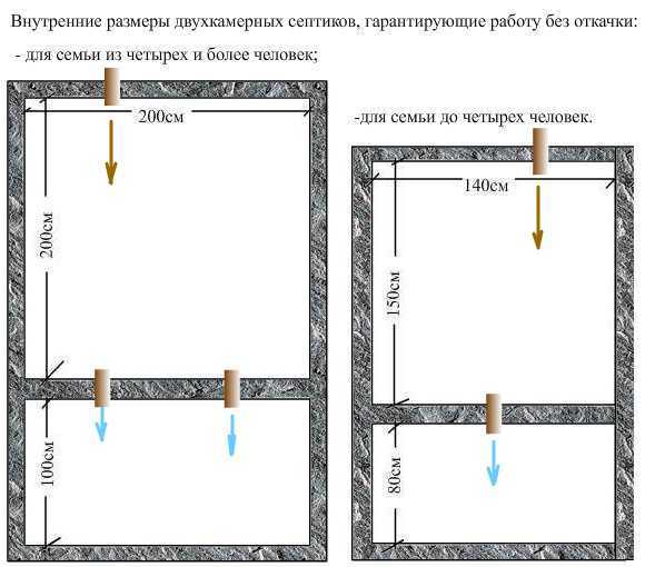 Из названия понятно, то в данном случае конструкция представляет собой 2 соединенные между собой емкости, одна из них выполняет роль отстойника, а вторая выступает в качестве камеры фильтрации и выполняется без дна, как и однокамерный септик.
