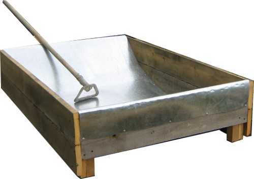 СуперкорытоМешать бетон очень удобно в самодельном корыте, как на рисунке, из досок и куска жести.