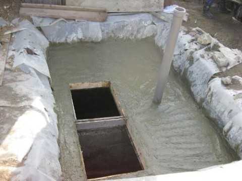 Бетонные ямы – долговечны, а при правильном выборе состава раствора – полностью герметичны. Для снижения уровня проницаемости бетона используют примеси на основе акрила, цемента, стекловолокна. Наружные поверхности стенок герметизируют и защищают от влаги битумными или мембранными изоляционными материалами. Внешние стенки утепляют пенополистиролом. Заливают раствор с арматурным слоем по опалубке.