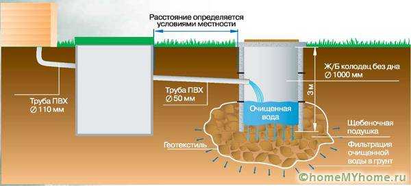 Полезный совет! В поверхностное устройство можно делать выводы от мойки, умывальников и от унитаза. В зависимости от подземных артерий емкость можно заглубить на определенное расстояние.