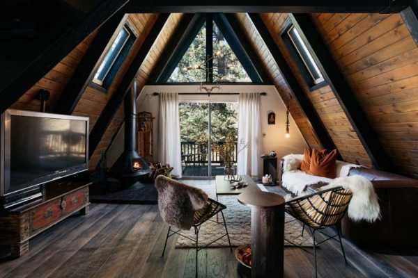 Треугольная форма дома шалаша может и не очень подходит для городских условий, зато это отличный вариант для загородных коттеджей. На природе – в лесу, в горах дом шалаш всегда выглядит естественно.