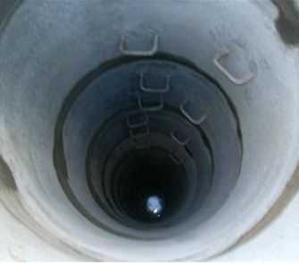 - На нижнее кольцо устанавливается следующее на слой цементного раствора с добавкой жидкого стекла. При отсутствии пазов соединение дополнительно фиксируется при помощи металлических пластин или скоб. Аналогично выполняется монтаж остальных колец.