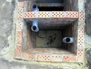 Далее следует вырыть яму правильной глубины – пригодятся расчеты объема будущего Шамбо с учетом толщины строительных материалов (колец, бетона или пластика). Стоит помнить, что в конечном варианте Шамбо присутствует внутренняя отделка – ее толщиной нельзя пренебрегать. Для внутренней отделки подойдет кирпич или плотный слой бетона. Заключительным этапом при самостоятельном строительстве Шамбо является подведение труб стока, идущие от стояка.