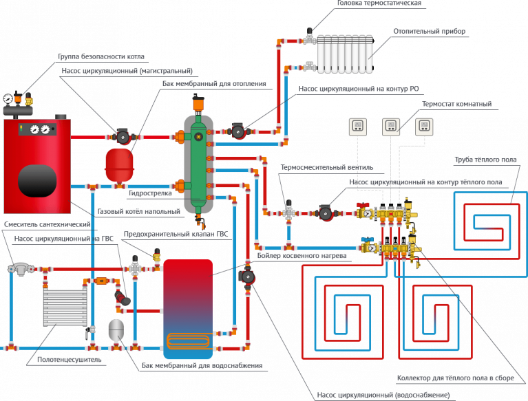 Схема отопления двухэтажного дома газовым котлом настенным одноконтурным