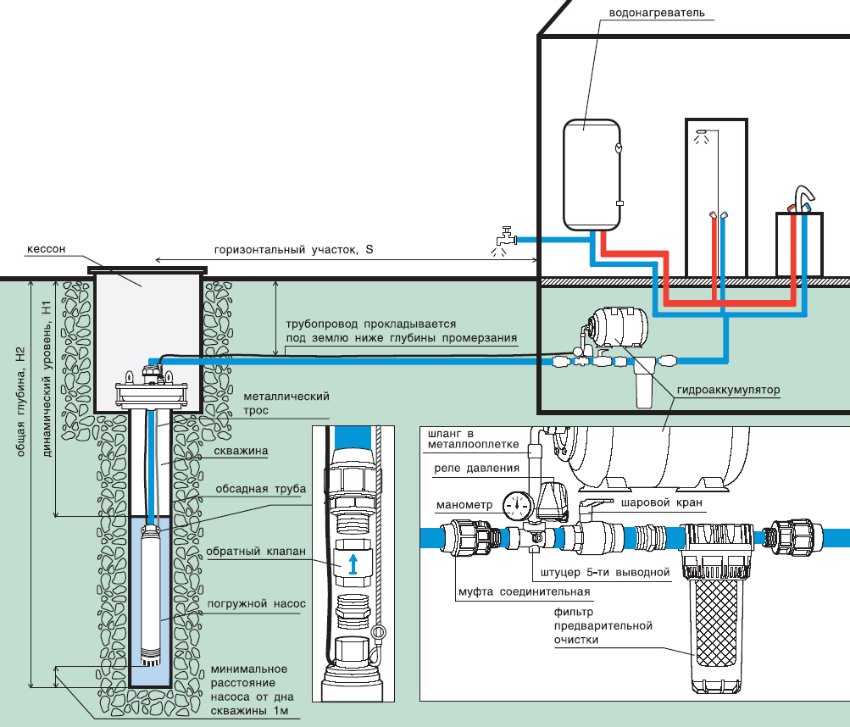 Система водоснабжения частного дома: Схема водоснабжения частного дома от скважины и разводка воды