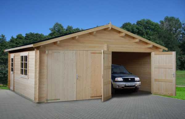 Дерево нельзя назвать традиционным материалом для возведения гаражей. Еще не так давно строить из него пожароопасные сооружения было запрещено. Однако сейчас существует возможность использовать специальные пропитки, лишающие древесину способности воспламеняться. Поэтому при желании можно использовать брус, бревно или доску для сооружения гаражного помещения. Дерево обеспечивает постройке эстетичный внешний вид и избавляет владельца от необходимости применять наружную и внутреннюю отделку.