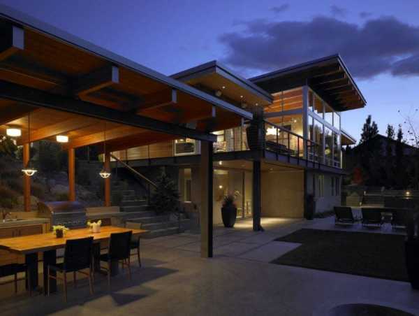 - Если позволяет общая концепция дизайна, предпочтение отдаётся проектам с плоской крышей, которая зачастую используется в качестве террасы, смотровой площадки или зоны отдыха;