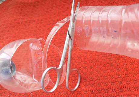 - По намеченным линиям режьте бутылку, начиная от горлышка и вниз.