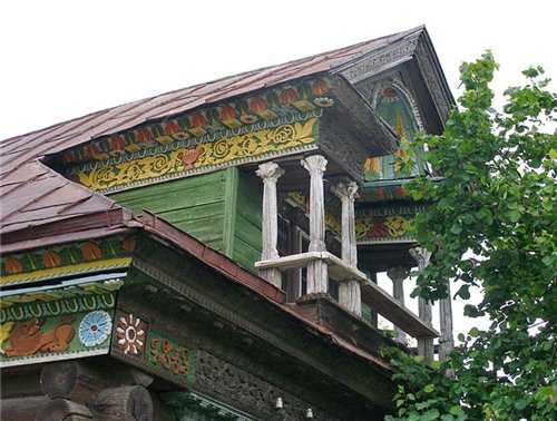 ΠΠ° Π±Π΅ΡΠΊΡΠ°ΠΉΠ½ΠΈΡ ΠΏΡΠΎΡΡΠΎΡΠ°Ρ Π ΠΎΡΡΠΈΠΈ ΠΊΡΠ΅ΡΡΡΡΠ½ΡΠΊΠΈΠΉ Π΄ΠΎΠΌ Π² ΡΠ°Π·Π½ΡΡ ΠΎΠ±Π»Π°ΡΡΡΡ ΠΌΠΎΠΆΠ΅Ρ ΡΡΡΠ΅ΡΡΠ²Π΅Π½Π½ΠΎ ΠΎΡΠ»ΠΈΡΠ°ΡΡΡΡ ΠΏΠΎ ΡΠΎΡΠΌΠ΅, ΠΊΠΎΠ½ΡΡΡΡΠΊΡΠΈΠΈ, ΡΡΡΠΎΠΈΡΠ΅Π»ΡΠ½ΡΠΌ ΡΡΠ°Π΄ΠΈΡΠΈΡΠΌ Π΅Π³ΠΎ Π²Π½Π΅ΡΠ½Π΅ΠΉ ΠΎΡΠ΄Π΅Π»ΠΊΠΈ, ΡΠ°Π·Π½ΡΠΌΠΈ Π΄Π΅ΠΊΠΎΡΠ°ΡΠΈΠ²Π½ΡΠΌΠΈ Π΄Π΅ΡΠ°Π»ΡΠΌΠΈ, ΡΠΈΡΡΠ½ΠΊΠ°ΠΌΠΈ ΡΠ΅Π·ΡΠ±Ρ ΠΈ Ρ.Π΄. Π’Π°Π»Π°Π½ΡΠ»ΠΈΠ²ΡΠΌ ΠΠ²Π°Π½ΠΎΠ²ΡΠΊΠΈΠΌ ΠΊΡΠ°Π΅Π²Π΅Π΄ΠΎΠΌ-ΠΏΠΈΡΠ°ΡΠ΅Π»Π΅ΠΌ ΠΠΌΠΈΡΡΠΈΠ΅ΠΌ ΠΠ»Π΅ΠΊΡΠ°Π½Π΄ΡΠΎΠ²ΠΈΡΠ΅ΠΌ ΠΠ²Π°Π½ΠΎΠ²ΡΠΌ, ΠΏΠΎΡΡΠ°ΡΠΈΠ²ΡΠΈΠΌ Π±ΠΎΠ»Π΅Π΅ Π΄Π²Π°Π΄ΡΠ°ΡΠΈ Π»Π΅Ρ Π½Π° ΠΈΠ·ΡΡΠ΅Π½ΠΈΠ΅ ΡΡΠ½ΠΎΠ³ΡΠ°ΡΠΈΠΈ ΠΠ²Π°Π½ΠΎΠ²ΡΠΊΠΎΠΉ Π·Π΅ΠΌΠ»ΠΈ, Π±ΡΠ» ΡΠΎΡΡΠ°Π²Π»Π΅Π½ ΠΎΠ±ΠΎΠ±ΡΠ΅Π½Π½ΡΠΉ ΠΏΠΎΡΡΡΠ΅Ρ ΠΊΡΠ΅ΡΡΡΡΠ½ΡΠΊΠΎΠ³ΠΎ Π΄ΠΎΠΌΠ°, ΠΏΡΠ΅ΠΎΠ±Π»Π°Π΄Π°ΡΡΠ΅Π³ΠΎ Π½Π° ΡΠ΅ΡΡΠΈΡΠΎΡΠΈΠΈ ΠΠ²Π°Π½ΠΎΠ²ΡΠΊΠΎΠΉ ΠΎΠ±Π»Π°ΡΡΠΈ. ΠΠ½ ΠΏΡΠ΅Π΄ΡΡΠ°Π²Π»ΡΠ΅Ρ ΡΠΎΠ±ΠΎΠΉ Π½Π΅Π±ΠΎΠ»ΡΡΠΎΠΉ Π΄ΠΎΠΌ Π² 3-4 ΠΎΠΊΠ½Π°, Ρ ΠΎΠ΄Π½ΠΎΠΉ ΡΠ²Π΅ΡΠ»ΠΎΠΉ ΠΊΠΎΠΌΠ½Π°ΡΠΎΠΉ Π²ΠΏΠ΅ΡΠ΅Π΄ΠΈ. Π‘Π·Π°Π΄ΠΈ ΡΠ΅ΠΏΠ»ΠΎΠΉ ΡΠ°ΡΡΠΈ Π΄ΠΎΠΌΠ° ΡΠ°ΡΠΏΠΎΠ»Π°Π³Π°Π΅ΡΡΡ ΠΊΡΡ Π½Ρ ΠΈ ΡΠΈΡΠΎΠΊΠΈΠΉ ΠΊΠΎΡΠΈΠ΄ΠΎΡ, Π° Π·Π° Π½ΠΈΠΌΠΈ ΠΊ Π΄ΠΎΠΌΡ ΠΏΡΠΈΠΌΡΠΊΠ°ΡΡ Ρ ΠΎΠ·ΡΠΉΡΡΠ²Π΅Π½Π½ΡΠ΅ ΠΏΠΎΠΌΠ΅ΡΠ΅Π½ΠΈΡ. Π’Π°ΠΊΠΈΠΌ ΠΎΠ±ΡΠ°Π·ΠΎΠΌ, Π΄ΠΎΠΌ ΠΏΡΠ΅Π΄ΡΡΠ°Π²Π»ΡΠ΅Ρ ΡΠΎΠ±ΠΎΠΉ ΡΠΎΠ²ΠΌΠ΅ΡΠ΅Π½Π½ΡΡ ΠΊΠΎΠ½ΡΡΡΡΠΊΡΠΈΡ ΡΠ΅Π½ΠΈ — Π΄Π²ΠΎΡ, Π²ΡΡΡΠ½ΡΡΡΡ ΠΎΡ ΡΠ»ΠΈΡΡ, ΡΠ±ΠΎΠΊΡ ΠΏΡΠΈΡΡΡΠ°ΠΈΠ²Π°Π΅ΡΡΡ ΠΊΡΡΠ»ΡΡΠΎ. ΠΠ»Π°Π²Π½Π°Ρ ΡΠ΅ΡΡΠ° ΡΠ°ΠΊΠΎΠ³ΠΎ Π΄ΠΎΠΌΠ° — ΠΏΡΠΎΠΏΠΎΡΡΠΈΠΎΠ½Π°Π»ΡΠ½ΡΠΉ ΡΠ°ΡΠ°Π΄ ΠΈ ΠΎΠΏΡΠ΅Π΄Π΅Π»Π΅Π½Π½Π°Ρ ΠΎΡΠ΄Π΅Π»ΠΊΠ°: ΡΠ΅Π·Π½ΠΎΠ΅ ΠΊΡΡΠΆΠ΅Π²ΠΎ, Π½Π°Π»ΠΈΡΠ½ΠΈΠΊΠΈ, ΠΎΡΠ΄Π΅Π»ΡΡΡΠΈΠ΅ ΠΎΠΊΠ½Π° ΠΎΡ ΡΡΠ΅Π½Ρ Π΄ΠΎΠΌΠ°, Ρ ΡΠ΅Π·Π½ΡΠΌΠΈ ΠΈΠ»ΠΈ Π½Π°ΠΊΠ»Π°Π΄Π½ΡΠΌΠΈ Π΄Π΅ΡΠ°Π»ΡΠΌΠΈ, ΡΠ²Π΅ΡΠ΅Π»ΠΊΠ°, ΡΠ΅ΠΆΠ΅ ΠΌΠ΅Π·ΠΎΠ½ΠΈΠ½, ΡΡΠ΅Ρ ΡΠ°ΡΡΠ½ΡΠ΅ Π»ΠΎΠΏΠ°ΡΠΊΠΈ, Π·Π°Π³ΠΎΡΠ°ΠΆΠΈΠ²Π°ΡΡΠΈΠ΅ ΡΠ³Π»ΠΎΠ²ΡΠ΅ Π²ΡΠ½ΠΎΡΡ Π±ΡΠ΅Π²Π΅Π½, ΡΠ»ΠΎΠΆΠ΅Π½Π½ΡΡ Π² «ΠΎΠ±Π»ΠΎ». Π€ΡΠΎΠ½ΡΠΎΠ½ ΡΠ²Π΅ΡΠ΅Π»ΠΊΠΈ Π²ΡΠ΄Π²ΠΈΠ½ΡΡ Π΄Π°Π»Π΅ΠΊΠΎ Π²ΠΏΠ΅ΡΠ΅Π΄ ΠΈ ΠΏΠΎΠ΄Π΄Π΅ΡΠΆΠΈΠ²Π°Π΅ΡΡΡ Π΄Π²ΡΠΌΡ ΠΏΠ°ΡΠ°ΠΌΠΈ ΡΠ΅Π·Π½ΡΡ ΡΡΠΎΠ»Π±ΠΎΠ², ΠΏΠ΅ΡΠ΅Π΄ ΠΊΠΎΡΠΎΡΡΠΌΠΈ ΡΡΡΡΠ°ΠΈΠ²Π°Π΅ΡΡΡ ΡΠ΅ΡΠ΅ΡΠΊΠ°, ΡΠΎΠ·Π΄Π°ΡΡΠ°Ρ Π²ΠΏΠ΅ΡΠ°ΡΠ»Π΅Π½ΠΈΠ΅ Π±Π°Π»ΠΊΠΎΠ½ΡΠΈΠΊΠ°. Π€ΡΠΎΠ½ΡΠΎΠ½ ΡΡΠΎΡ ΡΠ°Π·ΠΎΡΠ²Π°Π½ ΡΠΈΠ³ΡΡΠ½ΡΠΌ ΠΏΠΈΠΊΠΎΠ²ΡΠΌ ΠΈΠ·ΠΎΠ±ΡΠ°ΠΆΠ΅Π½ΠΈΠ΅ΠΌ, ΡΠ²Π»ΡΡΡΠΈΠΌΡΡ ΠΊΠ°ΠΊ ΡΠ°Π· ΠΎΡΠ½ΠΎΠ²Π½ΡΠΌ ΠΌΠ΅ΡΡΠ΅ΡΠΊΠΎΠ²ΡΠΌ ΡΠ»Π΅ΠΌΠ΅Π½ΡΠΎΠΌ Ρ ΡΠ΄ΠΎΠΆΠ΅ΡΡΠ²Π΅Π½Π½ΠΎΠ³ΠΎ ΠΎΡΠΎΡΠΌΠ»Π΅Π½ΠΈΡ ΡΠ°ΡΠ°Π΄Π° ΠΆΠΈΠ»ΠΎΠ³ΠΎ Π΄ΠΎΠΌΠ°. ΠΠ΅ΡΡΠ½ΡΠ΅ ΠΏΠ»ΠΎΡΠ½ΠΈΠΊΠΈ Π½Π°Π·ΡΠ²Π°ΡΡ ΡΡΠΎΡ Π²ΡΡΠ΅Π· «ΡΠ΅ΡΠ²ΠΎΠΉ». ΠΠ°Π»ΠΊΠΎΠ½Π½Π°Ρ ΡΠ΅ΡΠ΅ΡΠΊΠ°, ΠΏΡΠΈΡΠ΅Π»ΠΈΠ½Ρ, ΠΏΠΎΠ΄Π·ΠΎΡΡ ΡΡΠΎΠ½ΡΠΎΠ½Π° ΡΠΊΡΠ°ΡΠ°ΡΡΡΡ Π°ΠΆΡΡΠ½ΠΎΠΉ ΠΏΡΠΎΠΏΠΈΠ»ΡΠ½ΠΎΠΉ ΡΠ΅Π·ΡΠ±ΠΎΠΉ. ΠΠΎΠΌΠ° ΠΎΠΏΠΈΡΠ°Π½Π½ΠΎΠΉ ΠΊΠΎΠ½ΡΡΡΡΠΊΡΠΈΠΈ ΡΠΎΡΡΠ°Π²Π»ΡΡΡ Π±ΠΎΠ»ΡΡΠΈΠ½ΡΡΠ²ΠΎ ΡΠ΅Π»ΡΡΠΊΠΎΠΉ Π·Π°ΡΡΡΠΎΠΉΠΊΠΈ Π½Π° ΡΠ΅ΡΡΠΈΡΠΎΡΠΈΠΈ ΠΠ²Π°Π½ΠΎΠ²ΡΠΊΠΎΠΉ ΠΎΠ±Π»Π°ΡΡΠΈ.