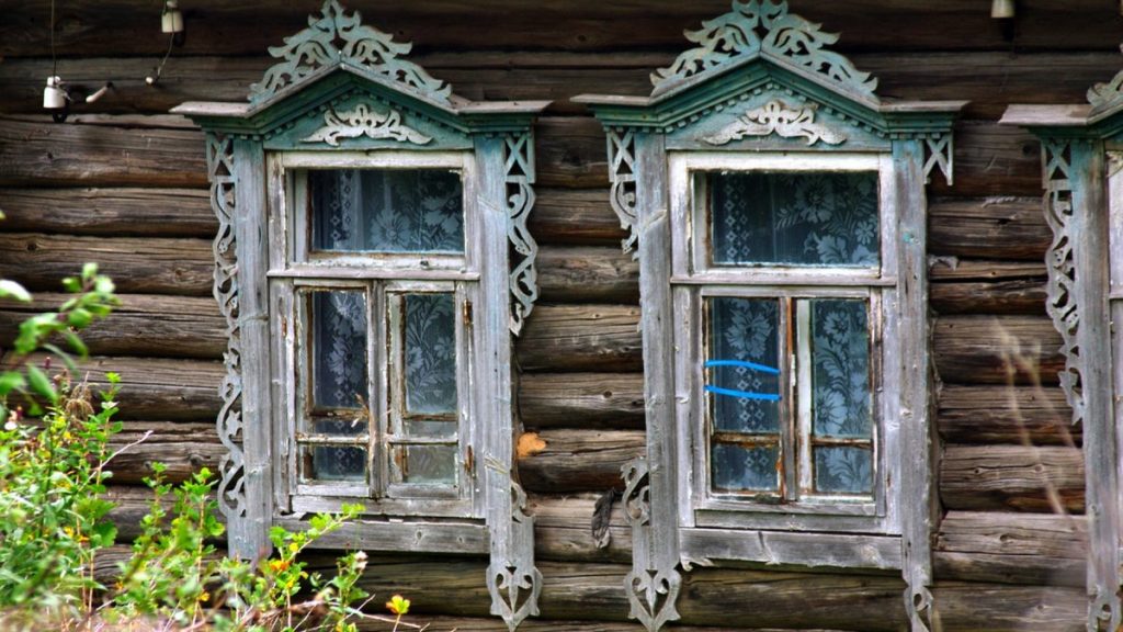 окна в старом деревянном доме.