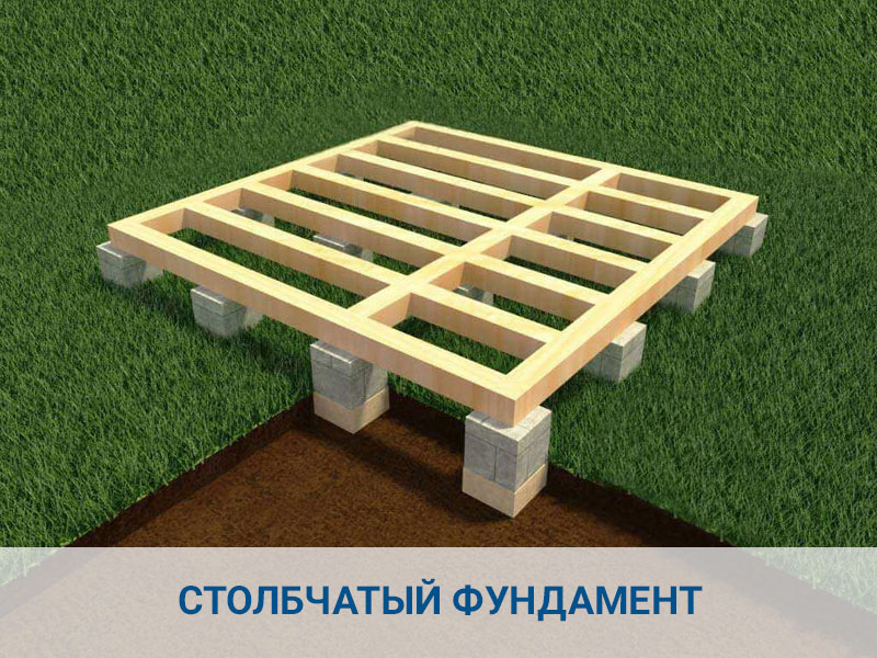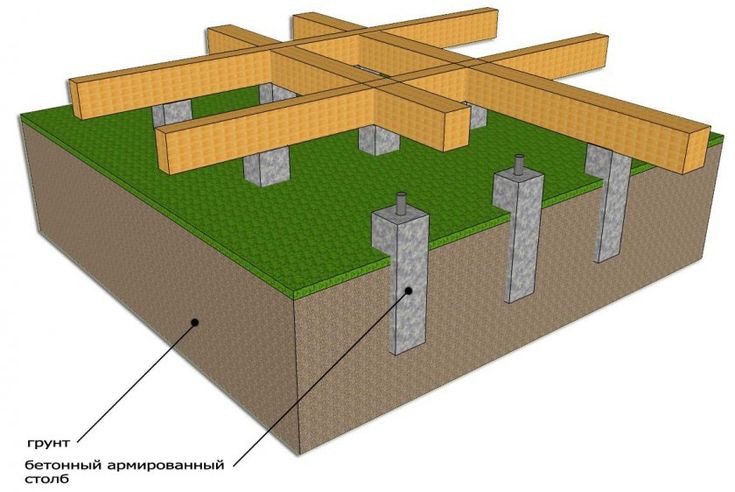 Конструкция столбчатого фундамента выполнена из опор, которые заглублены в землю.