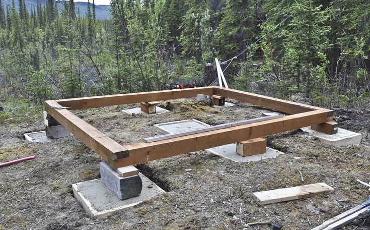 Это очень простой тип фундамента. Его преимущество в том, что нам не нужны никакие готовые изделия, мы можем обойтись тем, что найдем в лесу.