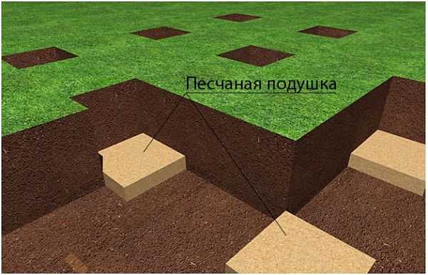 Независимо от типа возведения и материала возведения столбчатый фундамент рекомендуют устанавливать на песчаную подготовку.