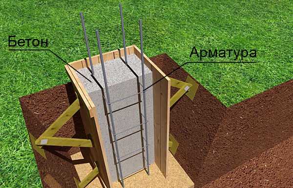 Кроме того, столбы в данном виде фундамента, могут различаться по способу возведения:
