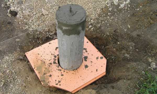 - Заглубленный. Его выбирают для таких почв, как глинистые или пучинистые. Устанавливаю так, чтобы столб располагался ниже уровня промерзания почвы. Под столб в обязательном порядке насыпают слой гравия и песка, который методом дренажа изолирует бетонное основание от влаги. Глубина закладки столба составляет около 1 метра.