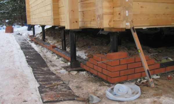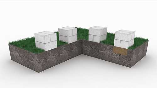 Сборные опоры собираются из блоков или кирпича, по технологии. Так как оба эти способа предполагают использование цемента, столбчатый фундамент для каркасного дома возводятся только в теплое время года до первых заморозков.