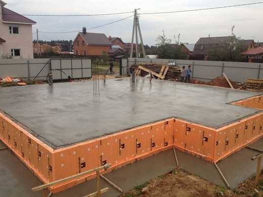 Описанные выше способы монтажа каркасного дома на брусах и ригелях, также можно отнести к так называемым «плавающим фундаментам», но такое название принято применять к монолитной железобетонной плите, используемой в качестве фундамента под дом.