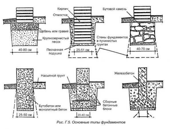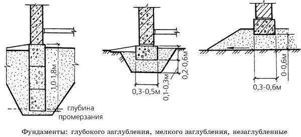 В зависимости от этих показателей, конструкции фундаментов можно условно разделить на следующие виды: