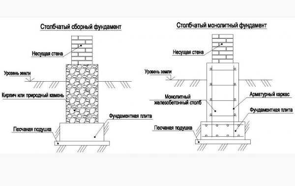 Как мы уже писали, столбчатый фундамент по форме столбов делится на: