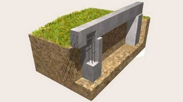 В принципе, он представляет собой армированную бетонную ленту (фактически – ригель) водруженную на свайный фундамент. При этом сама лента может быть как заглублена на незначительную глубину, так и находиться над поверхностью грунта, но в этом случае, не менее чем на 100 мм от его верхней точки. Во втором варианте можно не делать в ней вентиляционных отверстий.