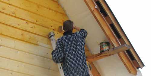 Не стоит думать, что остроганный пиломатериал сохранит свои свойства на всем отрезке времени, пока вы будете строить своими руками дом из бруса. Влажность его верхних слоев изменится, вместе с этим поменяется и качество поверхности. Поэтому перед покраской потребуется провести шлифовку бруса. Такие работы не только придадут стенам гладкость, но и гарантируют более качественное (и экономное!) нанесение слоев ЛКМ. Будьте готовы к тому, что шлифовка займет у вас не один день – процесс вполне может растянуться на несколько недель. Только после этого можно приступать к покраске дома из бруса.