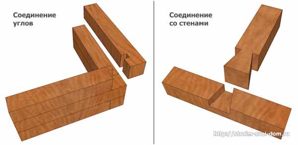 Теперь рассмотрим соединение бруса между собой. Брус нужно соединять между собой не только в одном ряду, но и по высоте.