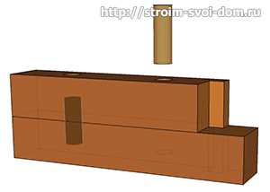 Важно. Отверстия в брусе должны быть чуть шире, чем диаметр нагеля. Высота отверстия так же делается больше на пару сантиметров. Это необходимо для того, чтобы при неизбежной усадке дома, отдельные брусья не повисли на нагелях.