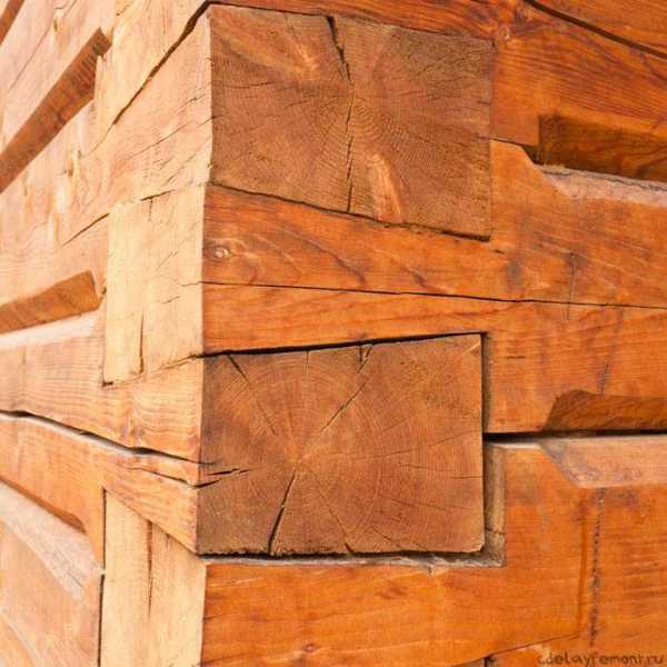 Для того, чтобы вода во время дождя не попадала в межвенцовые швы, с верхнего ребра лицевой части бруса снимают фаску.
