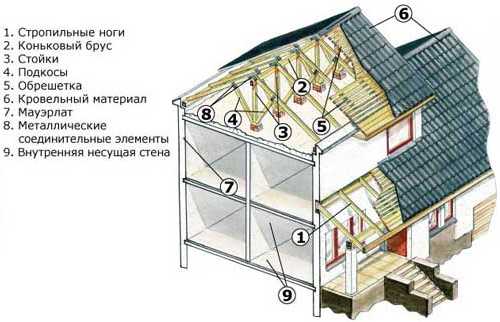 Основные элементы конструкции крыш частных домов: