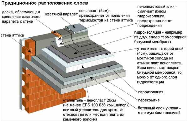 ΠΠΎΡΠ΅ΡΡ ΡΠ΅ΠΏΠ»Π° ΡΠ΅ΡΠ΅Π· ΠΊΡΡΡΡ ΡΠΎΡΡΠ°Π²Π»ΡΠ΅Ρ Π΄ΠΎ 30%. ΠΠΎΡ ΠΏΠΎΡΠ΅ΠΌΡ Π΅Π΅ ΡΠ΅ΠΏΠ»ΠΎΠΈΠ·ΠΎΠ»ΡΡΠΈΠΈ Π½Π΅ΠΎΠ±Ρ ΠΎΠ΄ΠΈΠΌΠΎ ΡΠ΄Π΅Π»ΡΡΡ ΠΏΠΎΠ²ΡΡΠ΅Π½Π½ΠΎΠ΅ Π²Π½ΠΈΠΌΠ°Π½ΠΈΠ΅. ΠΠ°ΠΊ ΠΏΡΠ°Π²ΠΈΠ»ΠΎ, ΠΏΠ΅Π½ΠΎΠΏΠ»Π°ΡΡ ΠΈΠ»ΠΈ ΠΌΠΈΠ½Π΅ΡΠ°Π»ΡΠ½Π°Ρ Π²Π°ΡΠ° ΡΠΊΠ»Π°Π΄ΡΠ²Π°Π΅ΡΡΡ Π½Π° Π±Π΅ΡΠΎΠ½, ΠΏΠΎΡΠ»Π΅ ΡΠ΅Π³ΠΎ Π·Π°Π»ΠΈΠ²Π°Π΅ΡΡΡ Π°ΡΠΌΠΈΡΠΎΠ²Π°Π½Π½ΠΎΠΉ ΡΡΡΠΆΠΊΠΎΠΉ. ΠΠ΅ΡΠ΅Π΄ ΡΡΡΠΆΠΊΠΎΠΉ ΡΠΊΠ»Π°Π΄ΡΠ²Π°Π΅ΡΡΡ Π΄ΡΠ΅Π½Π°ΠΆΠ½ΡΠΉ ΡΠ»ΠΎΠΉ ΠΈΠ· Π³ΡΠ°Π²ΠΈΡ, ΠΊΠΎΡΠΎΡΡΠΉ Π΄ΠΎΠ»ΠΆΠ΅Π½ Π΄ΠΎΡΡΠΈΠ³Π°ΡΡ 80-100 ΠΌΠΌ. Π ΡΠΆΠ΅ Π½Π° ΡΡΡΠΆΠΊΡ ΡΠΊΠ»Π°Π΄ΡΠ²Π°Π΅ΡΡΡ Π³ΠΈΠ΄ΡΠΎΠΈΠ·ΠΎΠ»ΡΡΠΈΠΎΠ½Π½ΡΠ΅ ΠΌΠ°ΡΠ΅ΡΠΈΠ°Π»Ρ. ΠΠ±ΡΡΠ½ΠΎ ΡΡΠΎ ΡΡΠ»ΠΎΠ½Π½ΡΠ΅ ΠΏΠΎΠΊΡΡΡΠΈΡ Π½Π° ΠΏΠΎΠ»ΠΈΠΌΠ΅ΡΠ½ΠΎΠΉ ΠΎΡΠ½ΠΎΠ²Π΅ Ρ Π²Π΅ΡΡ Π½ΠΈΠΌ ΡΠ»ΠΎΠ΅ΠΌ ΠΈΠ· ΠΎΠΊΠΈΡΠ»Π΅Π½Π½ΠΎΠ³ΠΎ Π±ΠΈΡΡΠΌΠ°. ΠΡ Π°ΡΡΠΎΡΡΠΈΠΌΠ΅Π½Ρ ΠΎΡΠ΅Π½Ρ Π²Π΅Π»ΠΈΠΊ ΠΈ Π½Π°ΡΡΠΈΡΡΠ²Π°Π΅Ρ Π΄Π΅ΡΡΡΠΊΠΈ ΡΠ°Π·Π½ΠΎΠ²ΠΈΠ΄Π½ΠΎΡΡΠ΅ΠΉ. ΠΠ½ΠΈ Π½Π°ΠΏΠ»Π°Π²Π»ΡΡΡΡΡ Π½Π° ΡΡΡΠΆΠΊΡ Π³ΠΎΡΠ΅Π»ΠΊΠΎΠΉ ΠΈΠ»ΠΈ ΡΡΡΠΎΠΈΡΠ΅Π»ΡΠ½ΡΠΌ ΡΠ΅Π½ΠΎΠΌ Π² Π΄Π²Π° ΠΈΠ»ΠΈ ΡΡΠΈ ΡΠ»ΠΎΡ. Π§ΡΠΎΠ±Ρ ΡΠ΄Π΅Π»Π°ΡΡ Π΄ΠΎΠΌ Ρ ΠΏΠ»ΠΎΡΠΊΠΎΠΉ ΠΊΡΡΡΠ΅ΠΉ, ΡΠ΅ΠΌ Π±ΠΎΠ»Π΅Π΅ ΡΠ°ΠΊΠΎΠΉ ΠΊΡΡΡΠ΅ΠΉ, ΠΊΠΎΡΠΎΡΠ°Ρ Π±ΡΠ΄Π΅Ρ Π³Π΅ΡΠΌΠ΅ΡΠΈΡΠ½ΠΎΠΉ ΠΈ Π·Π°ΡΠΈΡΠΈΡΡ ΠΏΠΎΠΌΠ΅ΡΠ΅Π½ΠΈΠ΅ ΠΎΡ ΡΠ΅ΡΠ΅ΠΉ, Π½Π΅ΠΎΠ±Ρ ΠΎΠ΄ΠΈΠΌΠΎ ΠΎΡΠΎΠ±ΠΎΠ΅ Π²Π½ΠΈΠΌΠ°Π½ΠΈΠ΅ ΡΠ΄Π΅Π»ΠΈΡΡ Π²ΡΠ΅ΠΌ ΡΡΡΠΊΠ°ΠΌ ΠΈ ΠΏΡΠΈΠΌΡΠΊΠ°Π½ΠΈΡΠΌ.