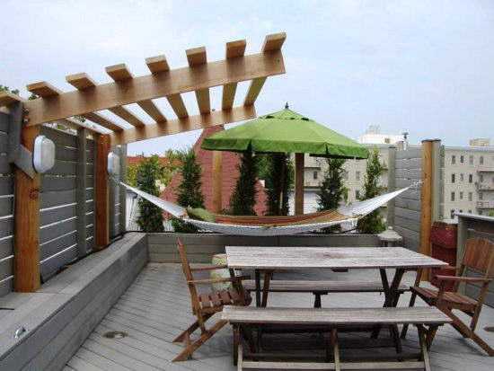 ΠΠ°ΡΠ°ΠΆ ΡΠΎΠ²ΠΌΠ΅ΡΠ΅Π½ Ρ Π΄ΠΎΠΌΠΎΠΌ, Π° ΠΏΡΠΎΡΡΡΠ°Π½ΡΡΠ²ΠΎ ΠΏΠΎΡΠ»Π΅Π΄Π½Π΅Π³ΠΎ ΡΠ΅ΡΠΊΠΎ ΠΏΠΎΠ΄Π΅Π»Π΅Π½ΠΎ Π½Π° Π΄Π½Π΅Π²Π½ΡΡ ΠΈ Π½ΠΎΡΠ½ΡΡ Π·ΠΎΠ½Ρ. Π’Π°ΠΊ ΠΊΠ°ΠΊ ΠΊΡΠΎΠ²Π»Ρ ΠΏΠ»ΠΎΡΠΊΠ°Ρ, ΡΠΎ Π΅Π΅ ΠΌΠΎΠΆΠ½ΠΎ ΡΠΊΡΠΏΠ»ΡΠ°ΡΠΈΡΠΎΠ²Π°ΡΡ Π² ΠΊΠ°ΡΠ΅ΡΡΠ²Π΅ ΠΎΡΠΊΡΡΡΠΎΠΉ ΡΠ΅ΡΡΠ°ΡΡ. ΠΠ½Π° ΠΏΡΠ΅ΠΊΡΠ°ΡΠ½ΠΎ ΠΏΠΎΠ΄ΠΎΠΉΠ΄Π΅Ρ Π΄Π»Ρ Π±Π°ΡΠ±Π΅ΠΊΡ.