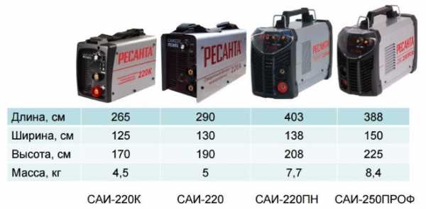 Сводная таблица технических характеристик сварочных инверторов «Ресанта»