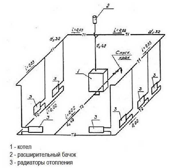 Схема отопления двухэтажной жилой постройки