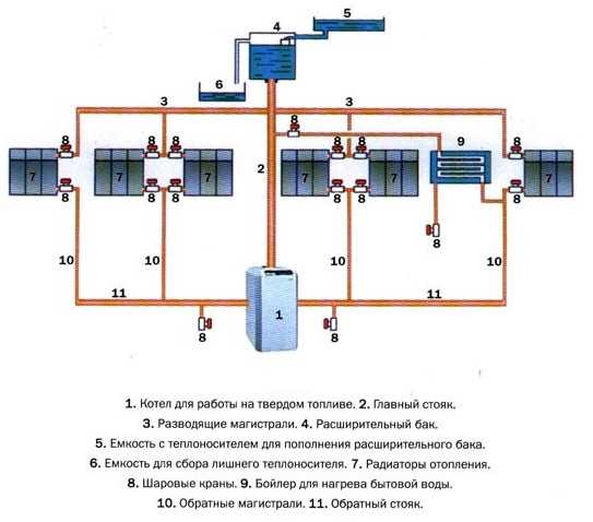Схемы отопления деревянных жилых сооружений