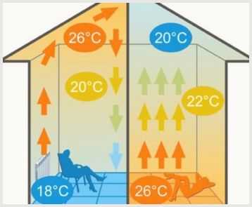 - Равномерный обогрев всего этажа.
