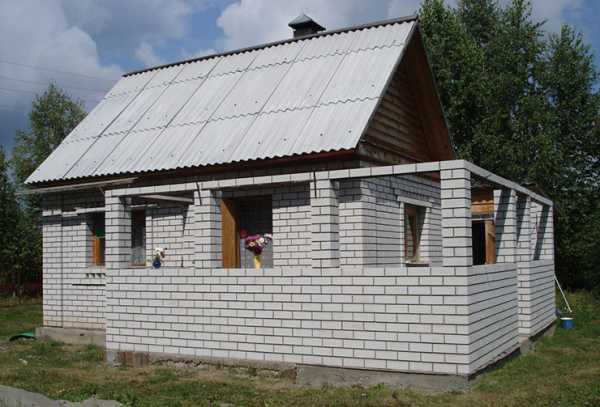 - Не забудьте отмерить и оставить отделения для двери и окон. В них установите бетонные перемычки.
