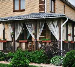 Крыша веранды состоит из стропил и кровельного материала. Кровлю лучше делать такой же, как у дома. Хороший выбор — металлочерепица или ондулин. Кроме того, крыша может быть прозрачной — из стекла или сотового поликарбоната. Придать веранде открытости можно использованием раздвижной тканевой крыши.