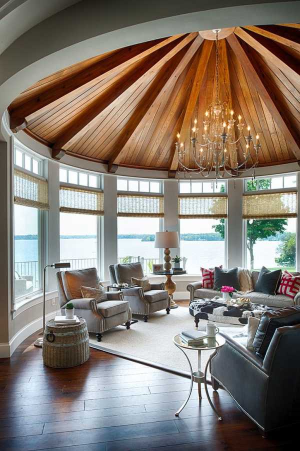 Если дом и его застекленная терраса построены возле леса, озера или реки, идеальным решением при оформлении пристройки станет прибрежный стиль. Он предполагает подбирать материалы для отделки очень тщательно. Они должны гармонировать с окружающей природой.