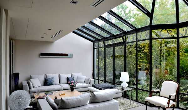 Основная ценность дополнительной пристройки — шикарные панорамные окна, из которых приятно любоваться пейзажем. Поэтому экономить на остеклении нельзя. Стекла легко бьются, поэтому рекомендуется использовать безопасный поликарбонат.