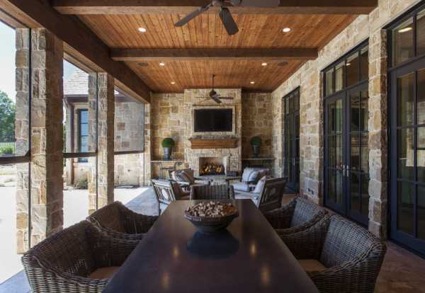 - Если планируете выходить на веранду и в прохладное время года, то заложите в ней камин.