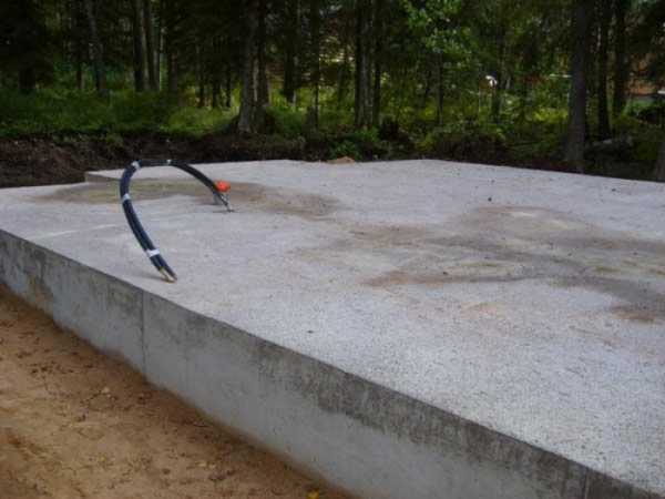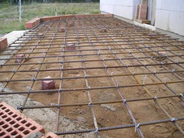 - Полученную конструкцию заливают бетонным раствором и оставляют высыхать. В жаркую погоду бетонную поверхность рекомендуется периодически поливать холодной водой;