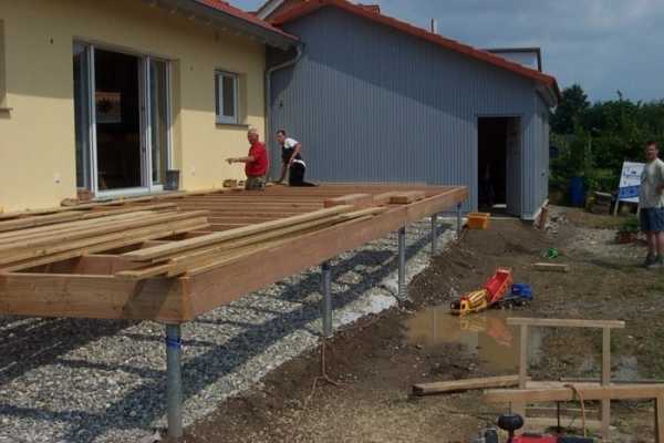 Терраса – это относительно простое сооружение, которое можно возвести собственными руками, не имея опыта создания подобных конструкций. Но во время создания основания необходимо следовать правилам сооружения фундамента.